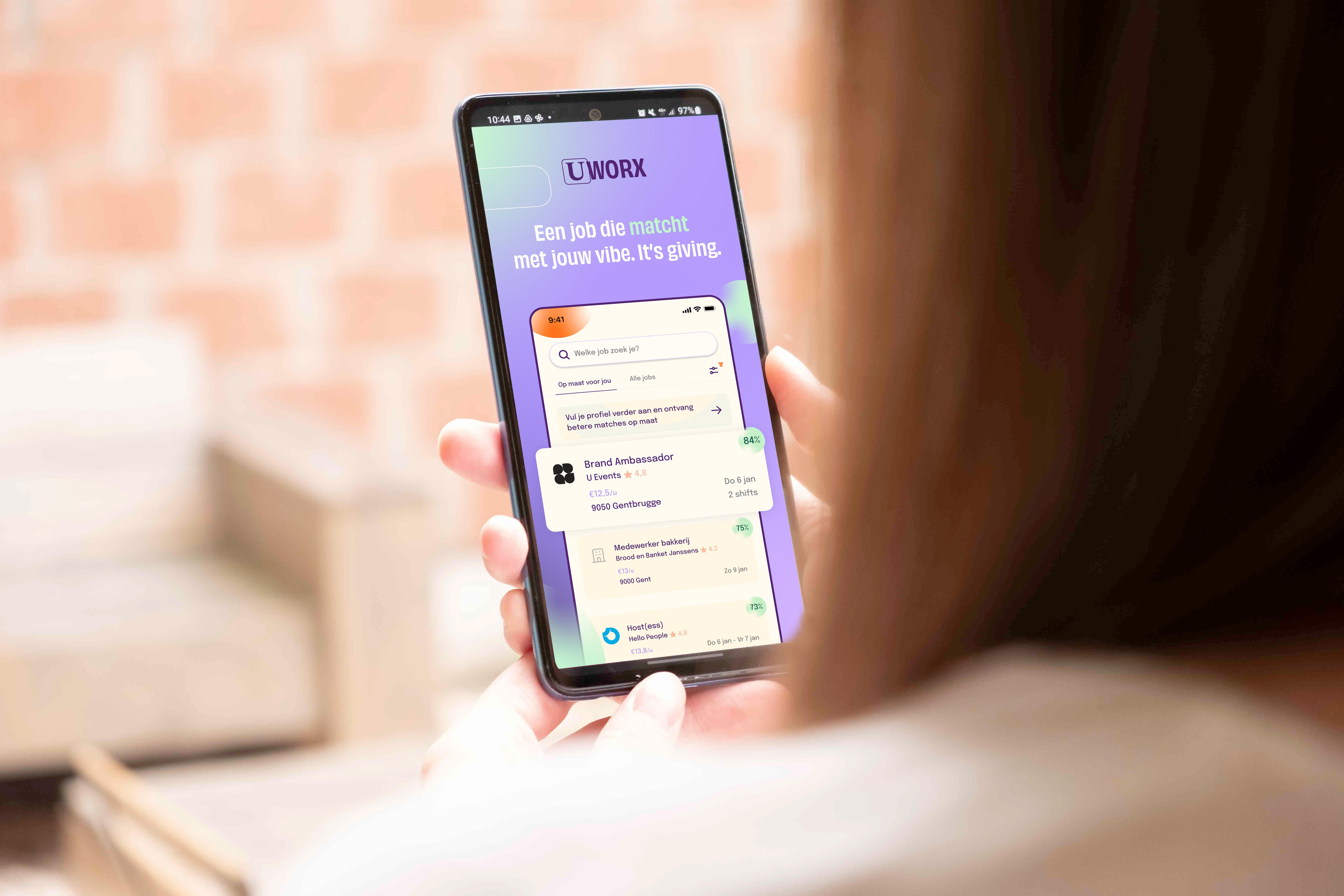 Met de nieuwe Uworx-app* vind je direct jobs die écht bij je passen.